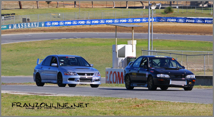 Image by unknown - please EMAIL me if you took it. Lapping the Hippo Creek/Allstar Garage Evo 9 at Sydney Motorsport Park for WTAC